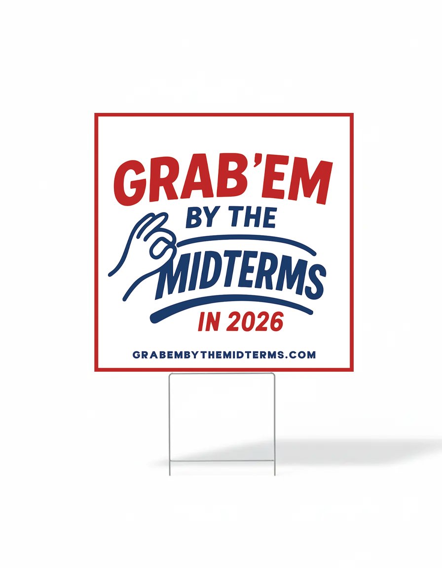 Shop the full Grab ’Em by the Midterms 2026 collection—stickers, bags, and more—and carry your message from your yard to the streets.