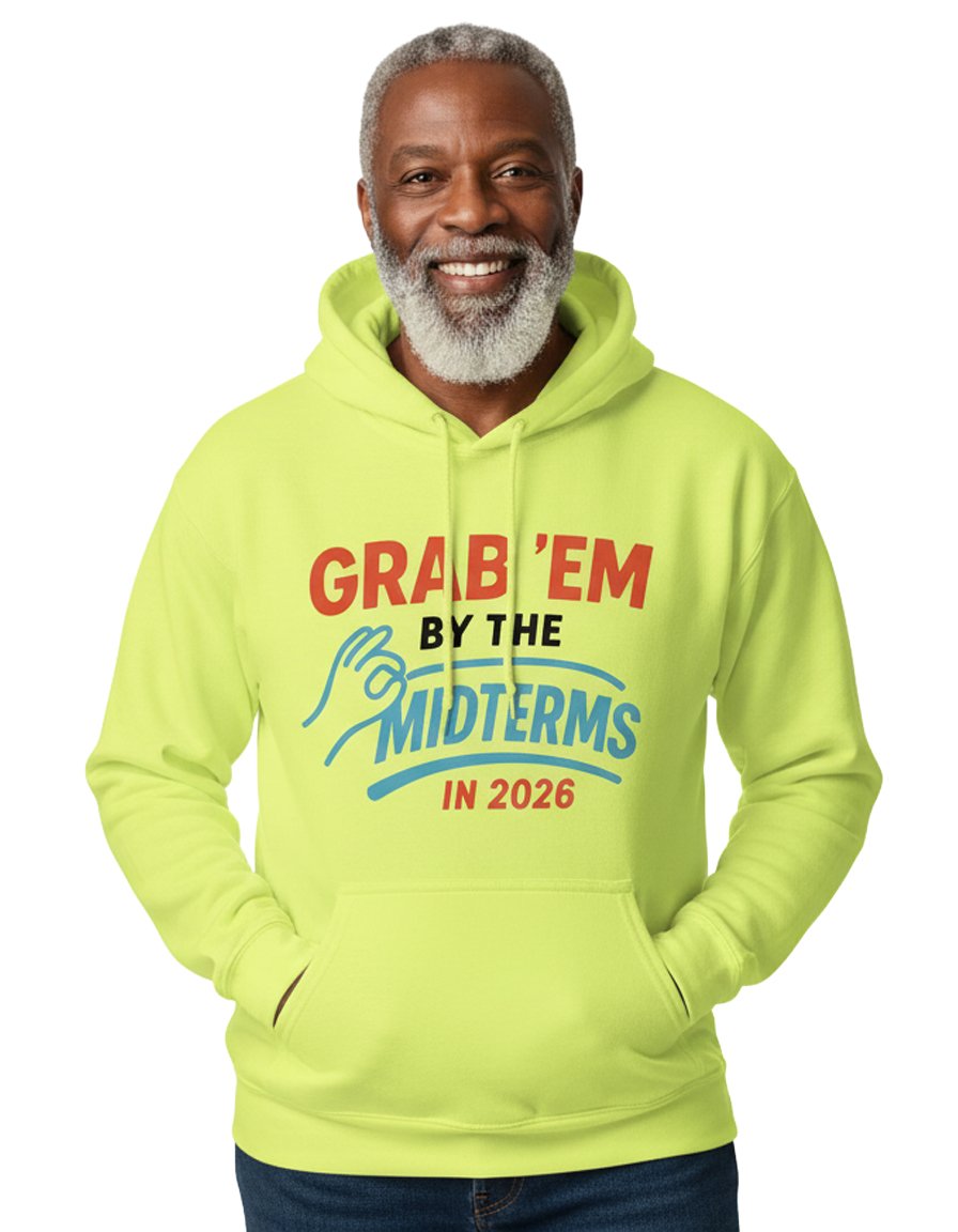 Invest in an item that’s more than just clothing—it’s a reflection of your ideals. With its premium design, spirited message, and practicality, the Grab’em By The Midterms 2026 Hoodie in safety green is your chance to wear your advocacy proudly.