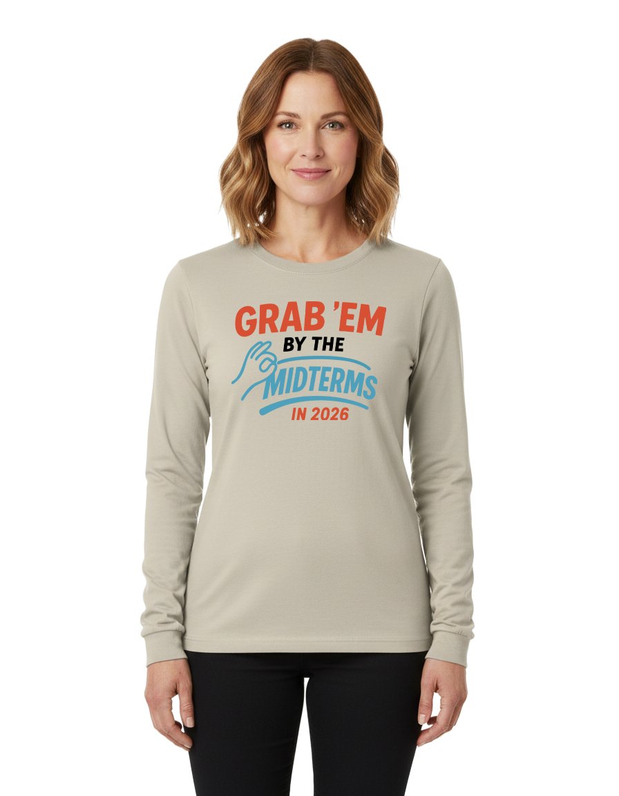 Step into the upcoming midterm season with confidence and unparalleled comfort, sporting our “Grab’em By The Midterms 2026” long sleeve shirt in sand color. Designed for those who want to showcase their unique style while celebrating the spirit of democracy, this shirt is the perfect blend of fashion and function. Whether you’re out campaigning, attending events, or simply enjoying the cooler months, this shirt is your ideal companion to stand out while staying comfortable.