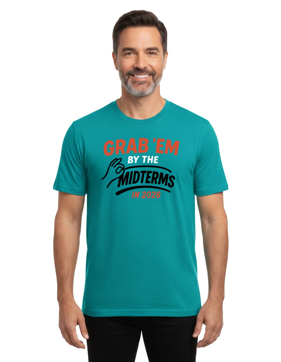 Express your unique style and showcase your passion for the upcoming 2026 midterms with our ‘Grab’em By The Midterms’ T-Shirts. Designed for individuals who love making bold statements, these t-shirts combine modern fashion with a splash of political wit. Featuring a sleek and sophisticated color in Antique Jade Dome, this shirt is perfect for rallies, casual outings, or simply sharing your enthusiasm for the upcoming elections.