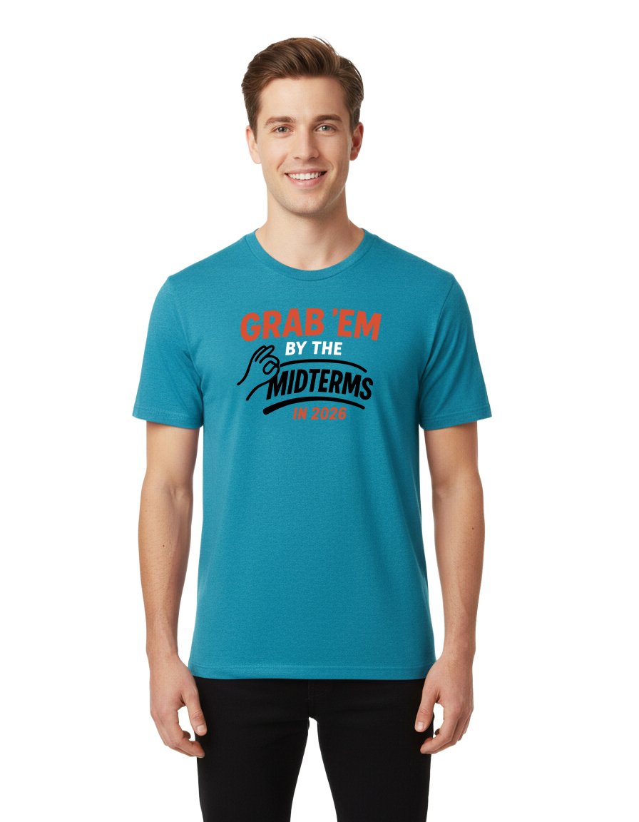 Express your bold personality and political savvy with our exclusive ‘Grab’em By The Midterms 2026′ T-Shirts in Antique Sapphire. Whether you’re attending rallies, casual meetups, or simply making a statement, this t-shirt is the perfect blend of fashion and thought-provoking commentary. Crafted for those who want to stand out while staying comfortable.